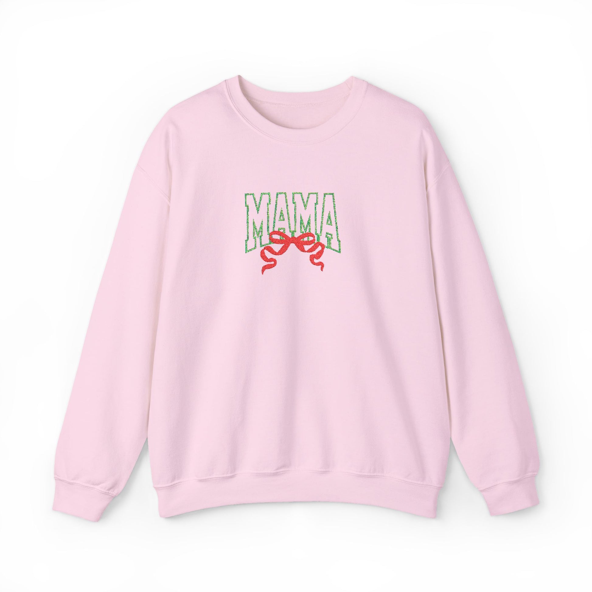 Meet the perfect cozy gift for every mama. Our MAMA Bow Sweatshirt features beautifully embroidered varsity-style lettering paired with a charming red bow for the sweetest festive touch. Made from a soft, premium cotton-blend fleece, this sweatshirt delivers warmth, comfort, and effortless style all season long.